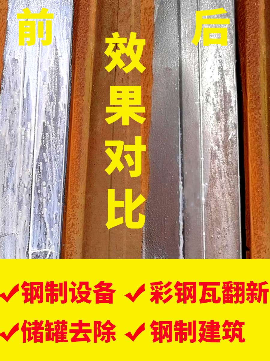 本品適用于鋼鐵、鋼結(jié)構(gòu)機(jī)械設(shè)備儲(chǔ)罐,管道,鋼板噴漆前有鐵銹條件下的轉(zhuǎn)化防銹處理,除銹,防銹一次完成,為基材提供長(zhǎng)期防銹保護(hù)。本品將基材表面的銹蝕轉(zhuǎn)化為疏水鈍化層,和傳統(tǒng)體系相比,帶銹轉(zhuǎn)化劑會(huì)提供更長(zhǎng)久的保護(hù),更廣泛的適應(yīng)性,更簡(jiǎn)單的操作。本品涂覆蓋于已生銹的金屬表面生成高分子聚合物,再配合水性漆搭配使用,讓基材可以更長(zhǎng)時(shí)間不生銹,并在施工過(guò)程中,無(wú)需除銹工序。